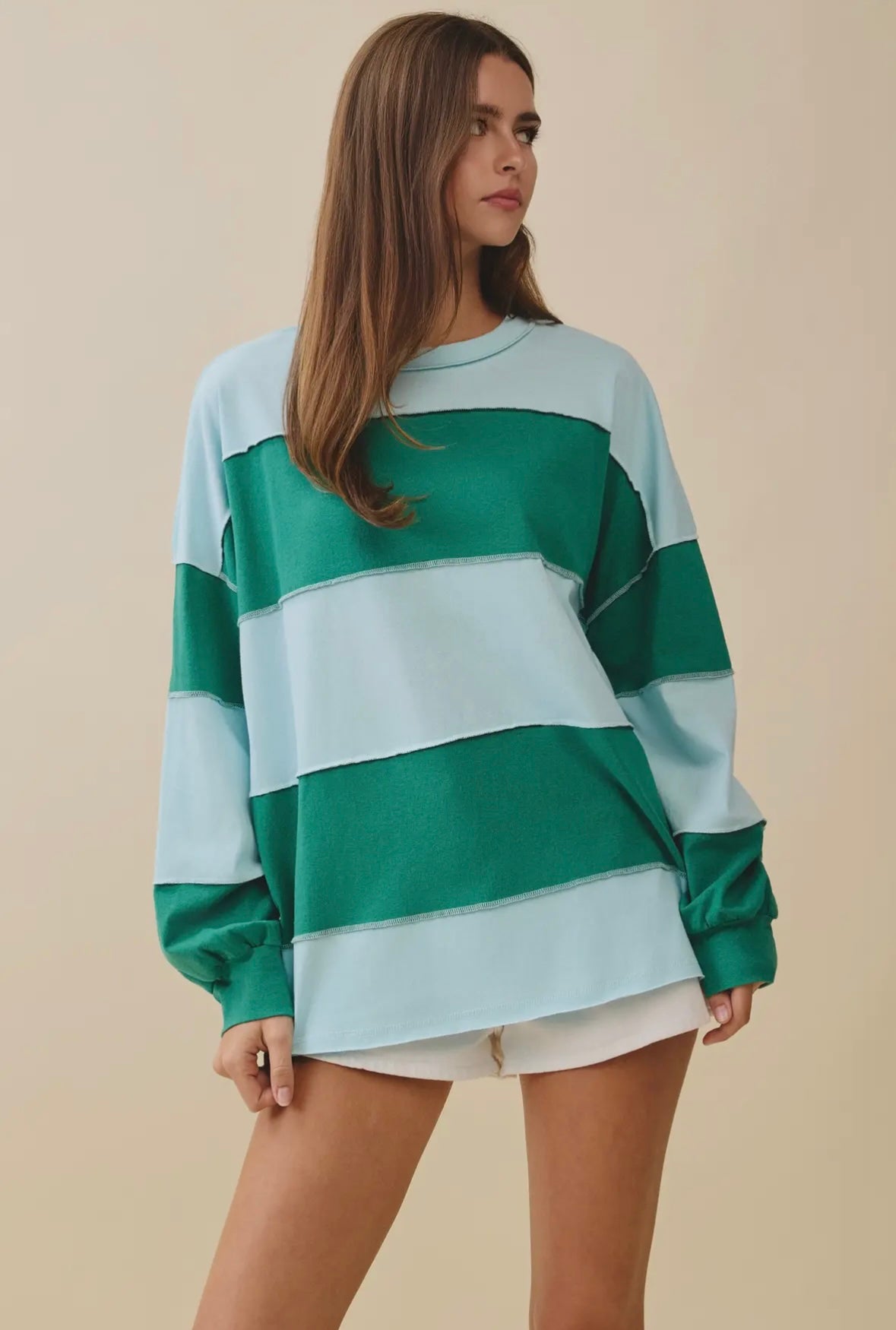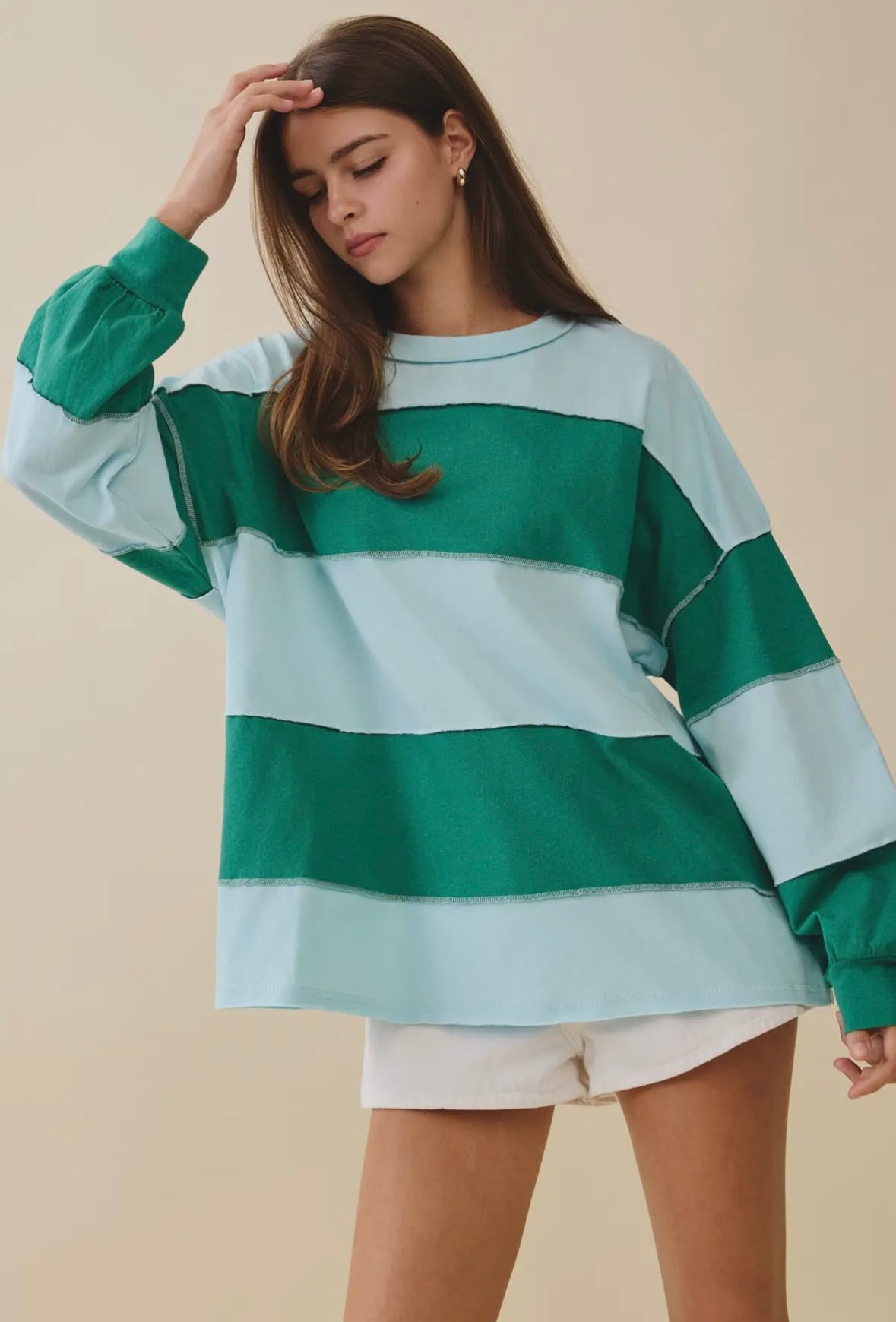 - This will surely be your easy, go to, throw on and go top. It features bold paneling, a boxy fit, soft seams and a laid back, cozy top for breezy days and chilly nights.