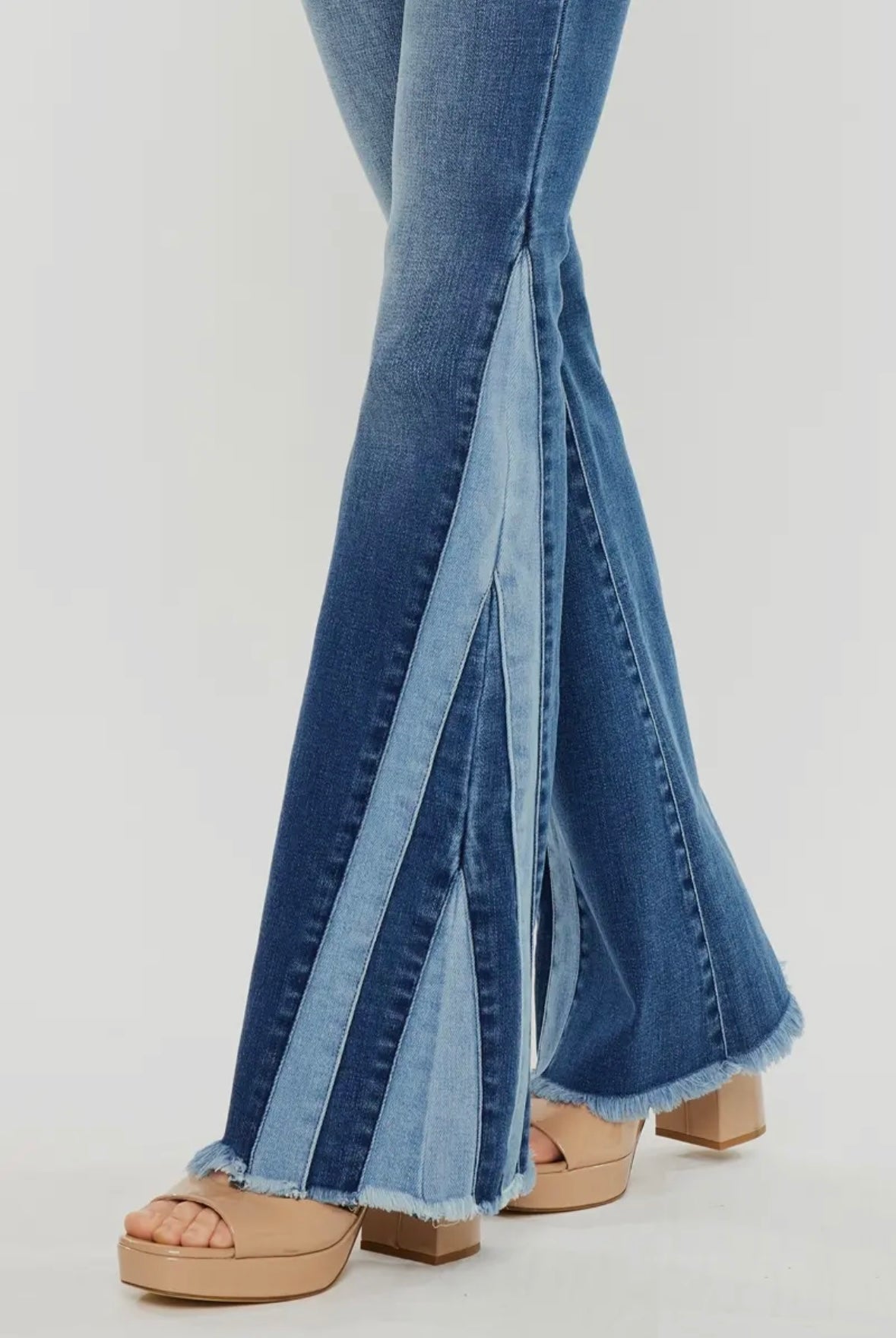 The Mabel High Rise Pieced Flare Jeans bring modern western charm with their flattering fit and unique side piecing detail.